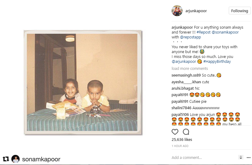I miss those days so much. Love you @arjunkapoor ? #HappyBirthday”. [sic]