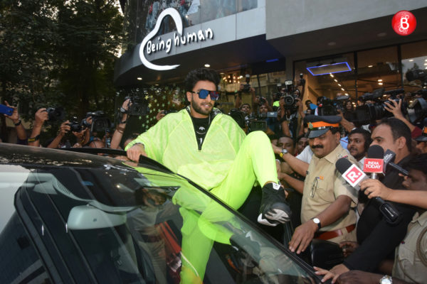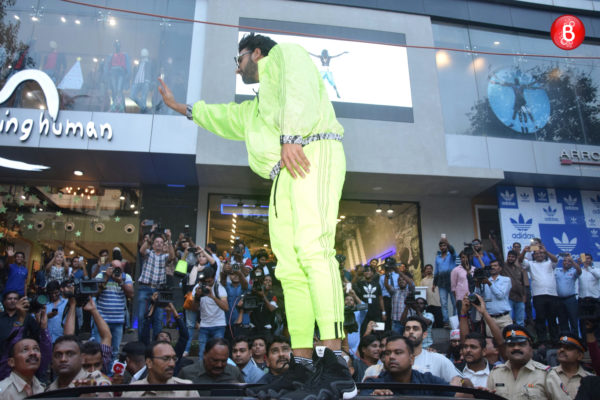 Actor Ranveer Singh was spotted outside the Adidas stores in the afternoon. While it was categorically stated in the invites that he won’t be taking any interview, he did break his silence on the threats and controversies surrounding his movie ‘Padmavati’. The actor stepped out of his car and soon a huge mob gathered around him in spite of the police protection. In no time, the actor jumped onto the roof of his car and the brought the traffic to a halt, on the streets of Khar.