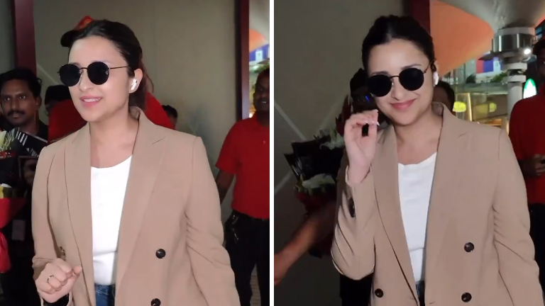 On the style front, Parineeti kept it casual in a white t-shirt, beige jacket and denim pants. She rounded off her look with black sunglasses and also carried a bag. The actress looked beautiful and how! We love how she kept it casual yet stylish.