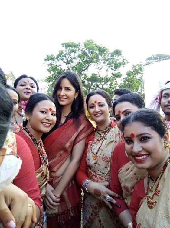 A snap of Katrina dressed up in a red saree, posing with a bunch of beautiful women is doing the rounds on the internet. Kat looks gorgeous in her traditional yet sober avatar!