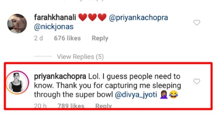 Priyanka was asked about the viral picture at Jimmy Fallon’s show as well. “Guys don’t you ever go out with a bunch of friends and you do something cute and they take a picture? This is my cousin Divya who took it. I fell asleep and she took a picture. She was like you are the first person who fell asleep while watching the super bowl,” shared the actress on the show.