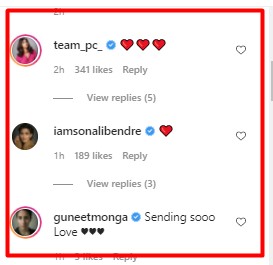 In the first picture, we can see the actress posing with her mommy Madhu Chopra. The second photo features PeeCee and Nick Jonas’ mother Denise. As soon as she shared the post, Sonali Bendre and Guneet Monga dropped a heart emoticon in the comments section.