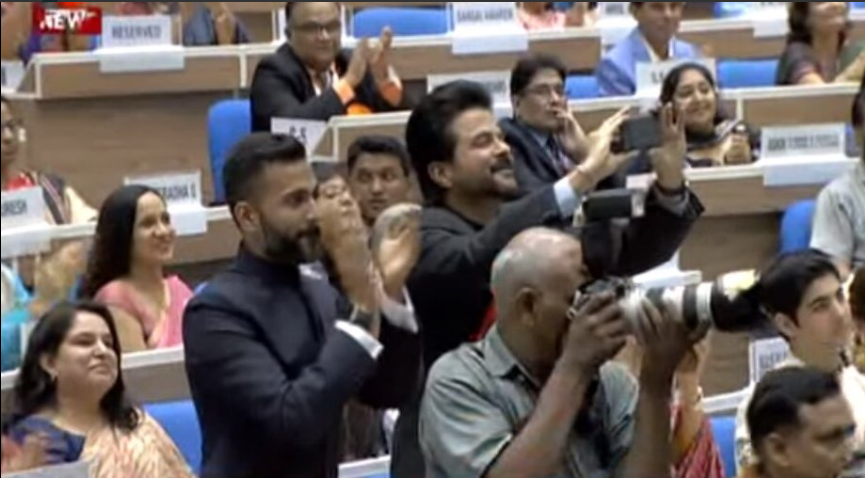 Sonam’s daddy Anil Kapoor and rumoured beau Anand Ahuja have accompanied the lady to the National Awards. We came across a few pictures from the ceremony wherein we can see Anil Kapoor cheering and clicking Sonam’s picture while she is receiving the award. Anand Ahuja too is elated with Sonam’s victory.