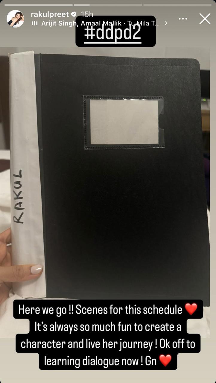 Actor Rakul Preet Singh is one of the prettiest actresses who has always added an extra charm to her characters in films. This is precisely why her fans eagerly await her upcoming projects. Interestingly, her fans are in for a treat as the actress is preparing for her new role in De De Pyaar De 2, and this is indeed exciting news for them. Taking to her social media, Rakul shared an image of a script and wrote, “#ddpd2 Here we go !! Scenes for this schedule. It’s always so much fun to create a character and live her journey! Ok off to learning dialogue now! Gn“