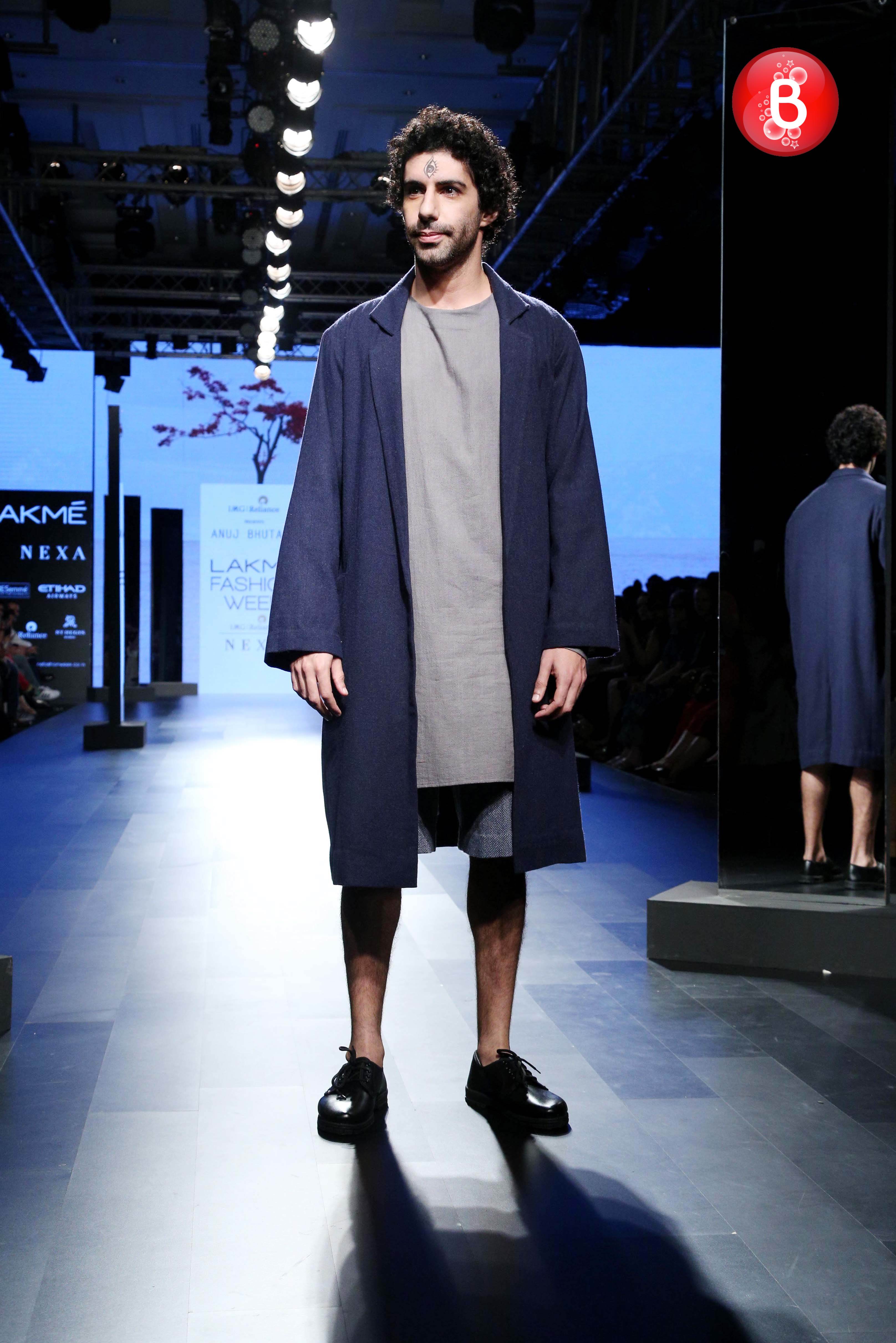 Looks like the baddie from the film 'Neerja' had a good time walking on the ramp. Jim, who had a large eye painted on his forehead, strode jauntily down the runway in a long boat-necked tunic, Bermudas and a relaxed coat. Verdict- Without a second thought, Jim looked very captivating while walking the ramp. And what we basically loved about Jim's getup here is that how relaxed his overall look was, amazing! Style score- 3.5/5!