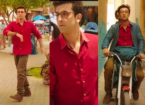 One thing which we've noticed in the entire trailer is that, Ranbir's stylist has used a lot of layering techniques to make him look innocent yet cool. In the above shot, he is again seen in his signature style of layering where he has sported a brightly woven sweater with a classic white collared shirt underneath.