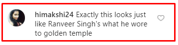 The moment Sabyasachi posted the pictures of Rani, fans of the actress started pouring in their comments. But a section of netizens started trolling her for copying Ranveer Singh. One user wrote, “Ye to ranveer singh ke kurta ka bacha hua kapda hai” while one commented, “This kapda looks the same as Ranveer Singh’s latest kurta pyjama he wore to Golden Temple”.