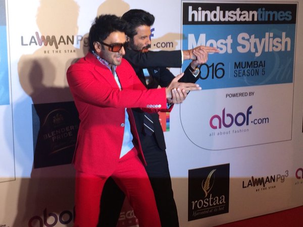 Ranveer Singh and Anil Kapoor share a great rapport and are always upto some crazy doings, whenever they meet. Recently, at the HT Style Awards’ 2016, when the two met at the red carpet, fun was bound to happen. While the shutter-bugs waited for them to give a normal pose, all they did was throw in some weird poses and antics. From doing the patent James Bond pose to the ‘Rum Pum Pum’ step, the two did it all. Check it out…