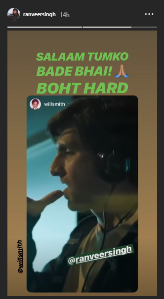 Ranveer did not stop there and added a touch of Murad and wrote further on his Instagram story, “SALAAM TUMKO BADE BHAI! BOHT HARD.” ‘Suicide Squad’ actor seems to be a fan of Ranveer and was quite excited after watching the film.