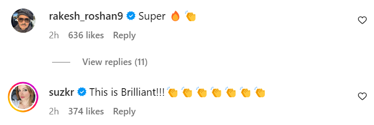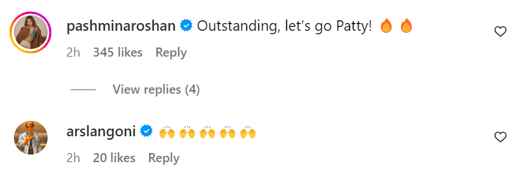 Even Hrithik got a lot of shoutouts, including from father Rakesh Roshan and ex-wife Sussanne Khan. While Rakesh ji called the trailer “Super”, Sussanne wrote, “This is Brilliant!!!,” with multiple applause emojis. Even Sussanne’s boyfriend Arslan Goni expressed his excitement with multiple raising-the-hands emojis. Hrithik got a review from cousin Pashmina Roshan too as she wrote, “Outstanding, let’s go Patty!”