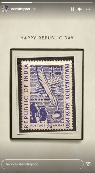 Shahid Kapoor shared a picture of the commemorative postage stamp that was issued by the postal department. “Happy Republic Day (sic),” he captioned the post.