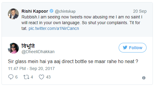 Senior actor Rishi Kapoor has been controversy’s favorite child thanks to his histrionics on Twitter. The actor has time and again expressed an aggressive stand on Twitter and has invited trouble his way. But, not one to take things to heart or be scared, the actor has continued exercising his innermost aggressive thoughts, ranting out loud and clear on Twitter. This time, he had the Twitterati fuming as he abused a woman by sending her a DM on Twitter.