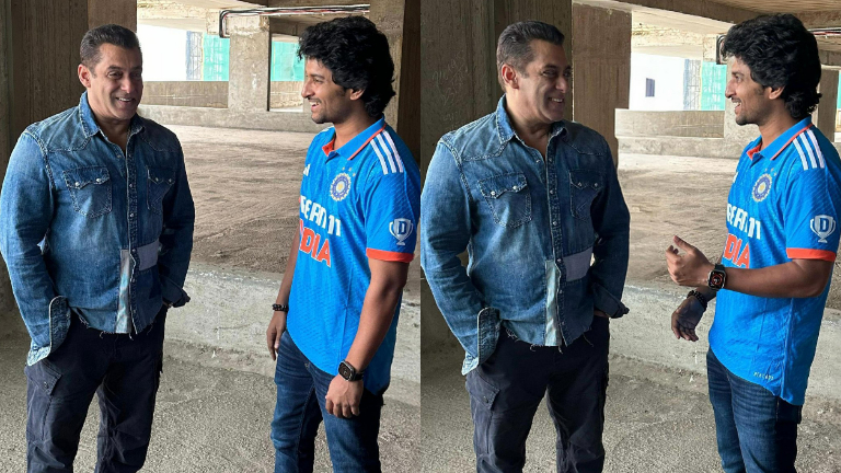 A blockbuster encounter off the field! ???@NameisNani and @BeingSalmanKhan crossed paths while promoting their respective films at the #CWC23 finals!