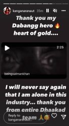 The post soon received a response from Kangana Ranaut. She wrote, “Thank you my Dabangg hero heart of gold…I will never say again that I am alone in this industry…thank you from entire Dhaakad team.”