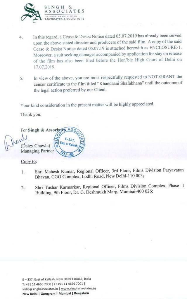 The website has also published a letter which dates to July 18th, 2019. It states that Dr. Abbot, who is the son of renowned sexologist Dr. Hakim Hari Kishan Lal, has raised the dispute against unauthorized and illegal use of their father’s well-reputed trademark – Khandaani Shafakhana.