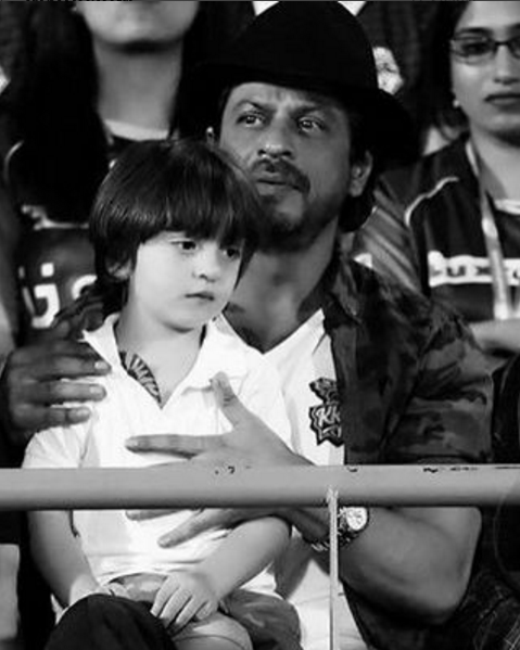 The tenth season of Indian Premier League (IPL) has kickstarted and Kolkata Knight Riders co-owner Shah Rukh Khan was there in the stands as his team took on Gujarat Lions. SRK wasn’t alone as his little son AbRam was there to give him company. But what caught our attention was the tattoo on AbRam’s chest. It was similar to what Shah Rukh Khan has on his chest. (Also Read: Shah Rukh Khan on his insecurity, films and more…)
