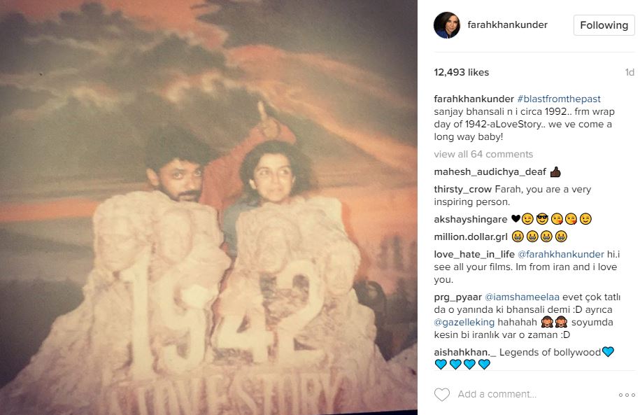 Along with the picture of herself and SLB, Farah wrote, “#blastfromthepast sanjay bhansali n i circa 1992.. frm wrap day of 1942-aLoveStory.. we ve come a long way baby!”