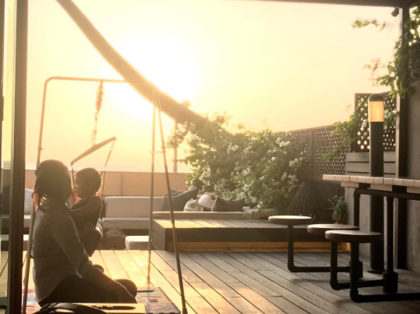 In the picture, we can see Mira and Misha sitting in an open space of the house, which looks like a terrace and daughter Misha seems to be on a baby jumper. Mommy Mira has lovingly taken Misha in her arms and the backdrop of the sun rays falling on them lends it a beautiful feel. Here’s the picture: