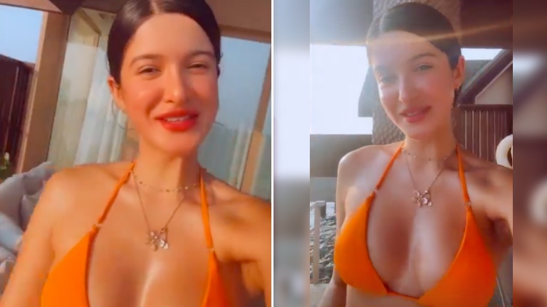 Nevertheless, the debutant recently took to her Instagram stories to drop a video of herself where she is seen wearing a stunning orange bikini. Shanaya is surely oozing summer vibes with her orange bikini look and we are so bookmarking this look. Flaunting her no-makeup look, the star kid looks beautiful.