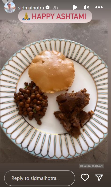 Both Sid and Kiara took to their respective Instagram stories to share a glimpse of their Ashtami celebration on Sunday. It included them gorging on chole, halwa and puri in the most traditional way. The couple also tagged each other as they shared a picture of their mouth-watering thali. This mutual celebration with each other is what makes the two of them such an adorable couple.