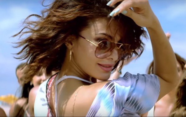From the trailer, one thing can be surely said that the stylist is obsessed with pastel colours. Looking all beach ready in those colourful pair of shorts with her pastel tank top layered and tied over her bikini, Jacqueline is a sight to behold.
