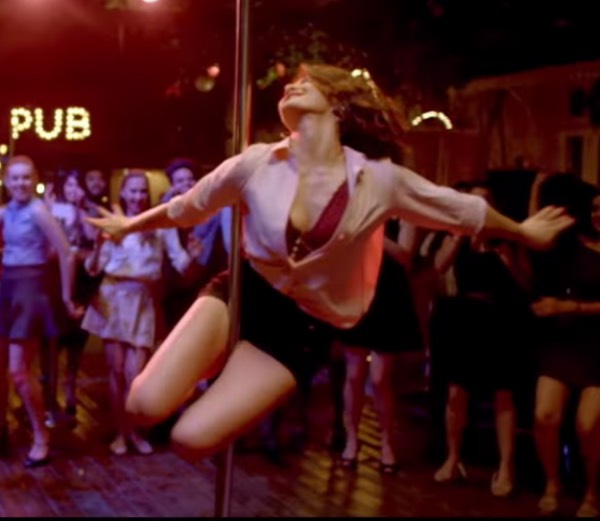 Here, in the above shot from the trailer, Jacqueline is seen carelessly dancing on a pole. With flashing some cute moves on the pole, we love how Jacqueline's shirt is left unbuttoned and is layered over an oxblood lace bralette. Ooh la la!