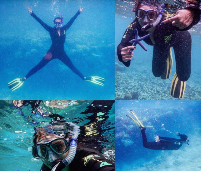 Guess where she was off to? A Snorkelling trip! Hiding yourself under water is the BEST stress-buster you could come across. From playing with a star fish to posing like one, the ‘Lootera’ actress had a gala time with her under-water friends, it seems!