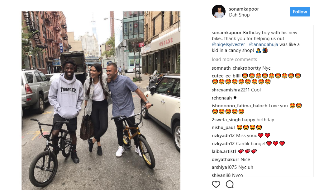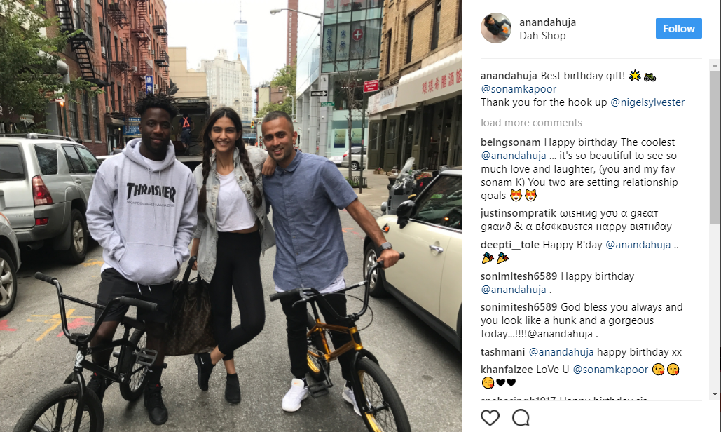 Later, an overjoyed Anand took to Instagram to share a photo of the trio and wrote, “Best birthday gift! @sonamkapoor. Thank you for the hook-up @nigelsylvester.” [sic]