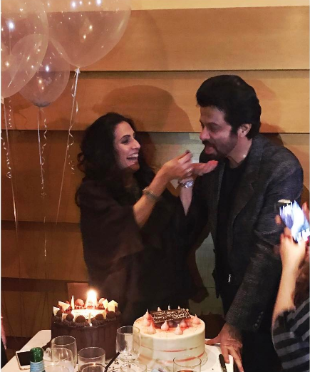 We also came across another cute picture of Sunita Kapoor cutting the cake and feeding it to hubby Anil Kapoor. Here’s the picture: