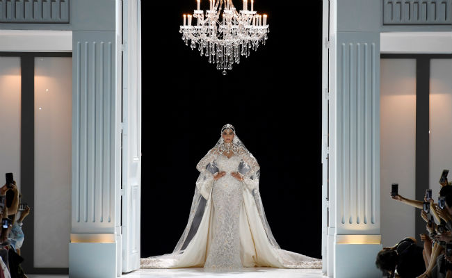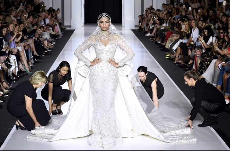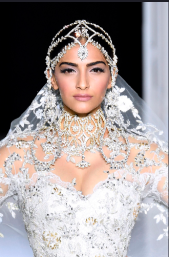 Sonam Kapoor is every fashion designer’s dream come true! The lady is a perfect blend of good physique, charming looks and an attitude that can kill. She is so comfortable in her skin that whatever she opts to wear, it just adds on to her gorgeousness. The leggy lass recently turned showstopper for ace designer Ralph & Russo and oh my, their combination is magical. Donning a white embellished gown and jewellery made of all diamonds, Sonam personified a Moroccan bride. Her peplum gown had a long train which required a little help to manage. Her bridal look was completed with a stunning veil. Sonam truly dazzled at this year’s Paris Fashion Week.