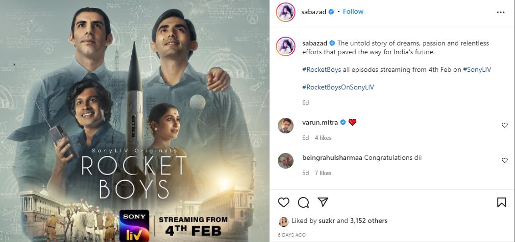 Amid reports of their alleged relationship, looks like Hrithik Roshan’s ex-wife Sussanne Khan has approved his relationship with Saba Azad. Recently, Saba posted a poster of her recently released web series, Rocket Boys on her official Instagram handle and the post was liked by Sussanne.