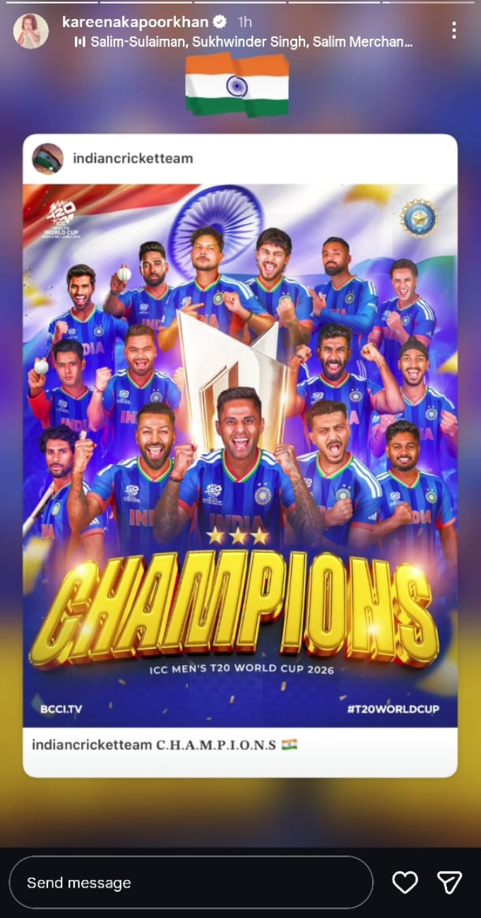 Several Bollywood celebs took to their Instagram Stories to congratulate the cricketers and celebrate Team India’s victory. From Kareena Kapoor Khan to Anushka Sharma and Vicky Kaushal, Shahid Kapoor, Kriti Sanon and more, scroll below to see all their posts and Insta Stories.