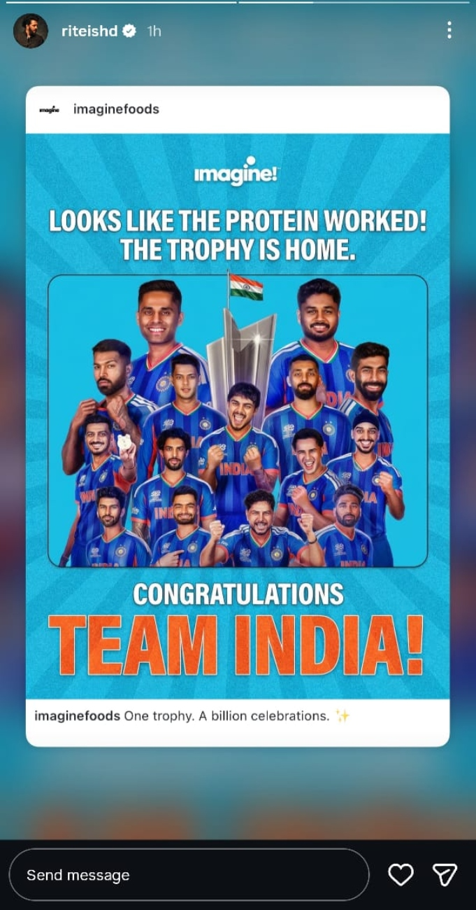 Amitabh Bachchan too took to X to celebrate India’s win. Big B tweeted, “T 5679 – Kaha tha nahi dekhunga to jeet jayenge ! Ho gaya !” Ayushmann Khurrana also celebrated India’s win by writing, “The Ahmedabad jinx has been broken! The worthy winners have written the history all over again! All three winning captains of T20 World Cup are present today! MSD, Ro and SKY!” Jr NTR also took to the micro blogging site to share his happiness. The ‘RRR’ actor wrote, “This is how our Men in Blue showed up with calm, composure and dominance throughout the tournament … and brought the trophy home again and created history… Congratulations Team India 🇮🇳. The nation will sleep well tonight.”