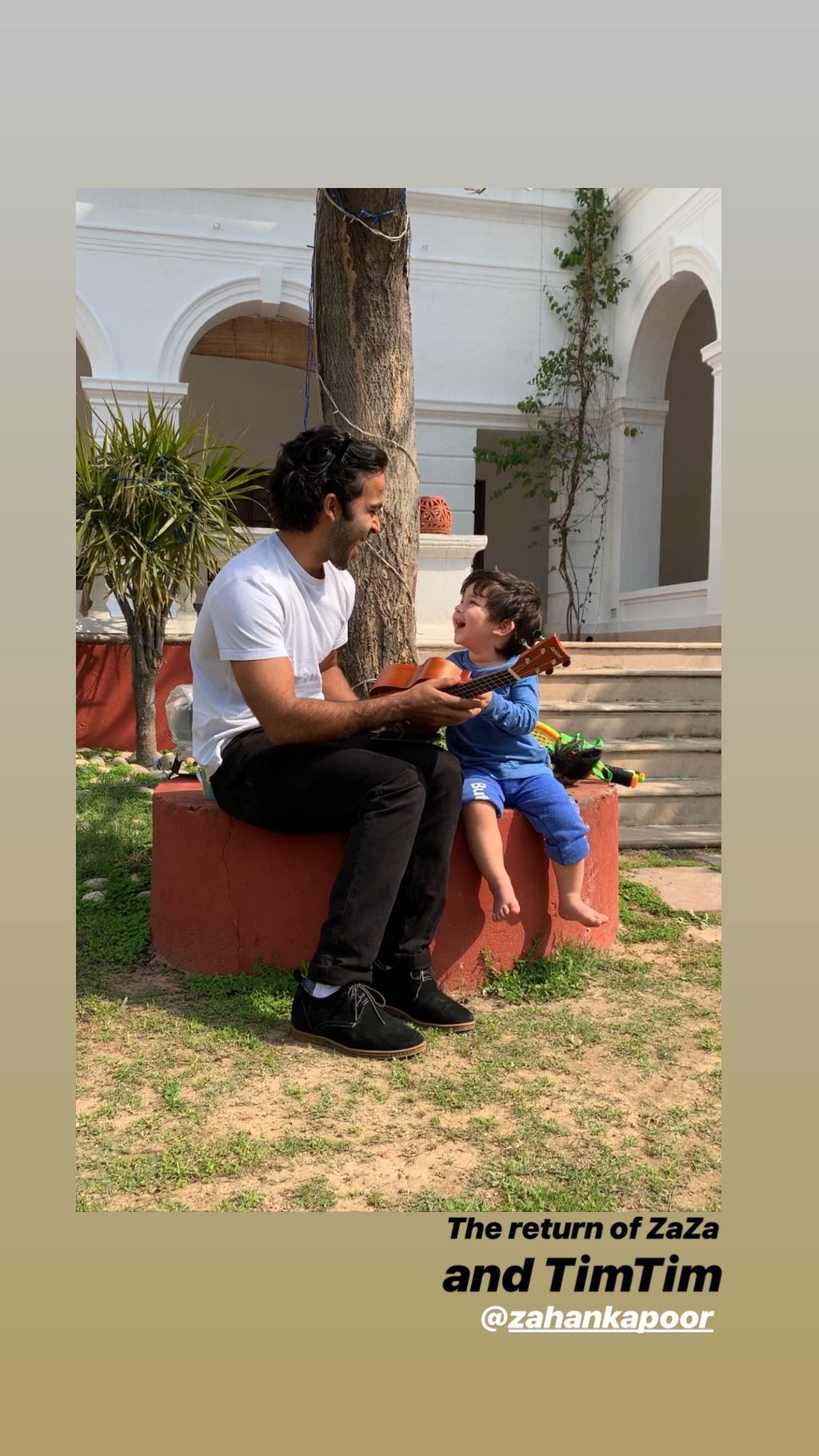 This is not the first time Zahan is seen with Taimur. Earlier we have seen the former playing guitar for the little one. These days Taimur seems to have developed his interest in horse-riding, football and music. A few days back he was seen holding a ukulele in his hand while he was with his daddy Saif.