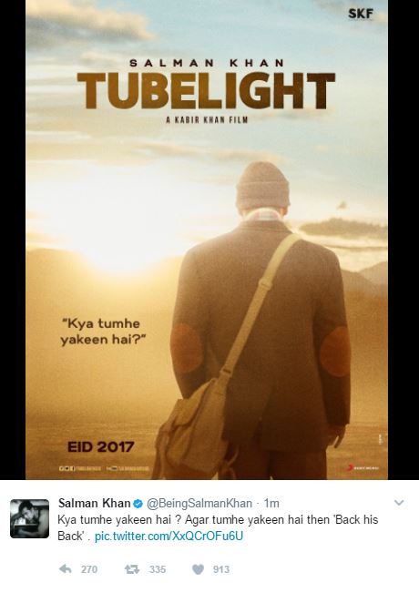Salman Khan-starrer ‘Tubelight’ is one of the most awaited films of the year. Yesterday, the makers had unveiled a video which introduced the social media handles of the film, and now, the teaser poster of the movie has been released.