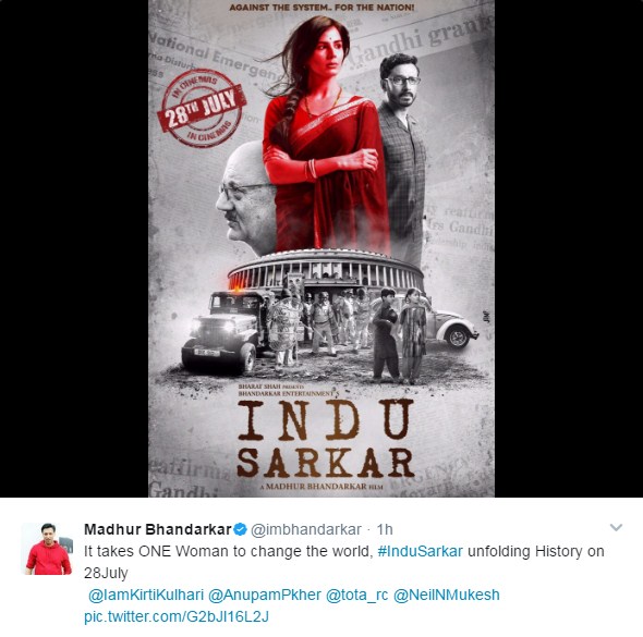 The director has captioned it writing, “It takes ONE Woman to change the world, #InduSarkar unfolding History on 28July @IamKirtiKulhari @AnupamPkher @tota_rc @NeilNMukesh.” [sic] (Also Check: Neil Nitin Mukesh goes unrecognisable as Sanjay Gandhi in ‘Indu Sarkar’)
