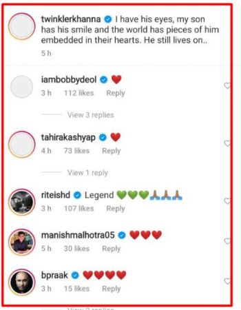 Twinkle’s friends and colleagues like Bobby Deol, Tahira Kashyap, Riteish Deshmukh, Manish Malhotra, B Praak dropped heart emojis on her post.