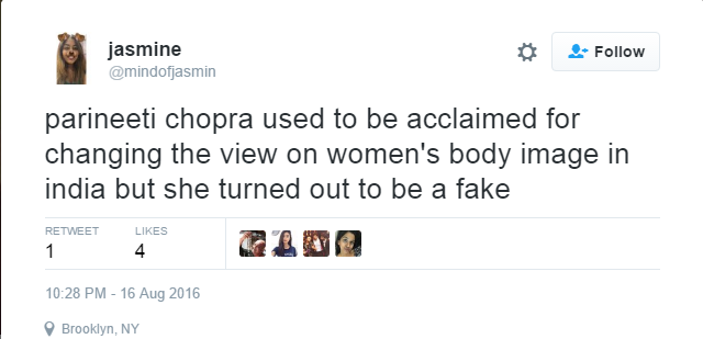 Twitteratis have gone into frenzy criticizing Parineeti for this message. check out a few tweets that speak against the actress.