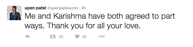 Upen took to Twitter and left us no scope to assume, as he wrote that his relationship with Karishma had hit the end!