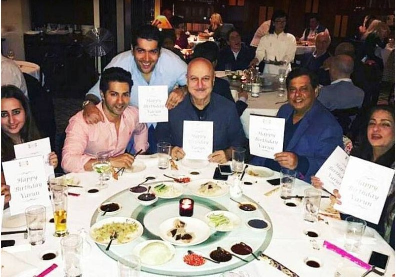 Varun Dhawan is in London shooting for his next film ‘Judwaa 2’ and hence, this year, he celebrated his birthday with the team of this film there. But, supposedly, Natasha did not want to be away from the love of her life, on his special day and hence, she flew down to London to celebrate his birthday. A few pictures from their celebrations have made it to the internet. Going by the pictures, it sure seemed to be an intimate celebration for Varun. We see his family and co-stars holding ‘Happy Birthday Varun’ placards.