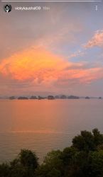 Vicky Kaushal took to his Instagram story and shared a picture from their beach vacation. The picture shows beautiful shades of nature with sunset, mountains, greenery and blue waters. Have a look: