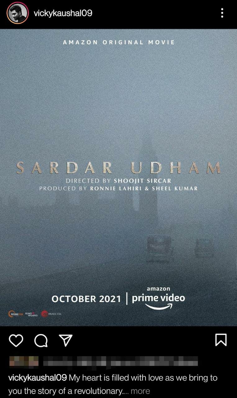 Vicky Kaushal wrote, “My heart is filled with love as we bring to you the story of a revolutionary. This October, watch #SardarUdhamOnPrime, @primevideoin (sic).”