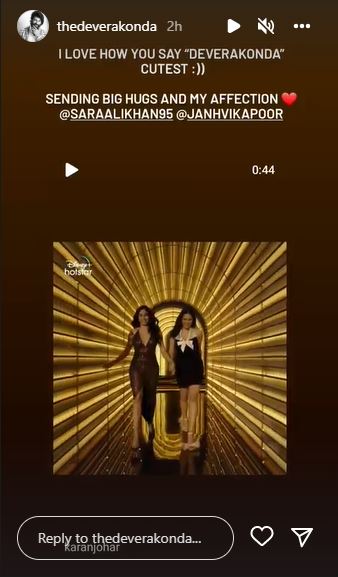 And well, Vijay notices the promo and has the sweetest reply to Sara’s comment. On Tuesday, the Liger star took to his Instagram stories and replied to Sara’s comment. Sharing the promo, he wrote, “I love how you say ‘Deverakonda’. Cutest. Sending big hugs and my affection (heart emoji).”