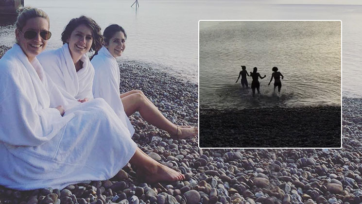 In the video, we can see Katrina with her sisters running towards the freezing English Channel with a temperature of 0 degrees and dunking in it. In the second picture, that the beauty has shared, we see them sitting on the beach wrapped in towels.