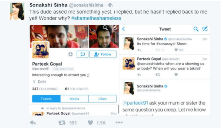 Sonakshi Sinha carried out the usual question and answer session with her fans. But, a crazy fan asked her a pathetic question which she highlighted with a post on Twitter. She posted,