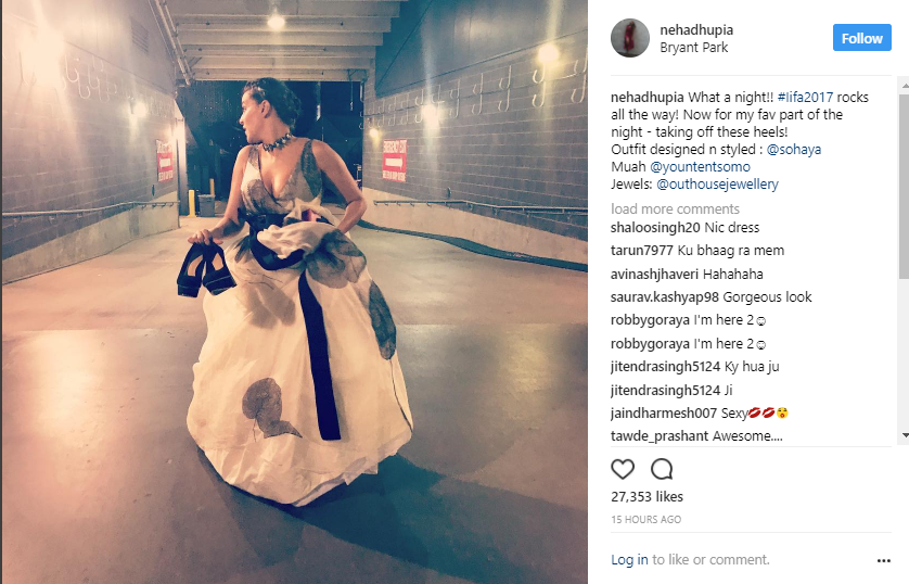 Neha Dhupia too suffered the same. She posted a picture on her Instagram page and captioned,”What a night!! #Iifa2017 rocks all the way! Now for my fav part of the night – taking off these heels!” [sic]