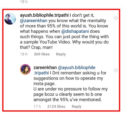 One of the users even reprimanded the actress but Zareen shut him up with her terrific reply.