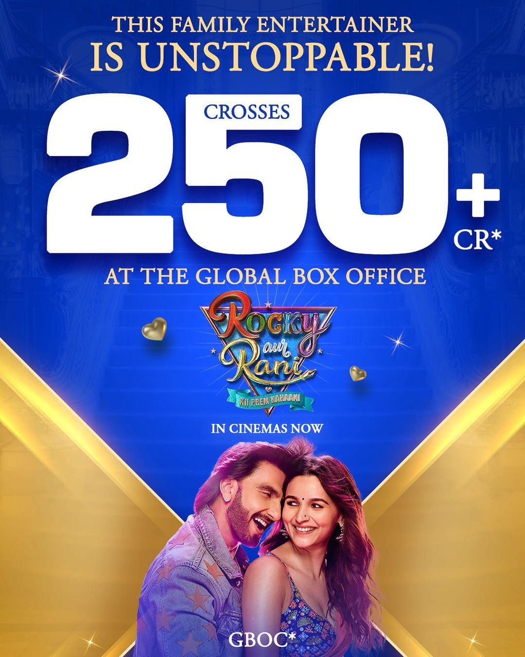 Rocky Aur Rani Kii Prem Kahaani starring Alia Bhatt and Ranveer Singh have worked phenomenally at the box office. Not just in India, the movie is doing considerably well at the global box office as well. Speaking about the worldwide collections, Rocky Aur Rani Kii Prem Kahaani has hit the Rs 250 crores mark globally. The family entertainer is unstoppable for sure!