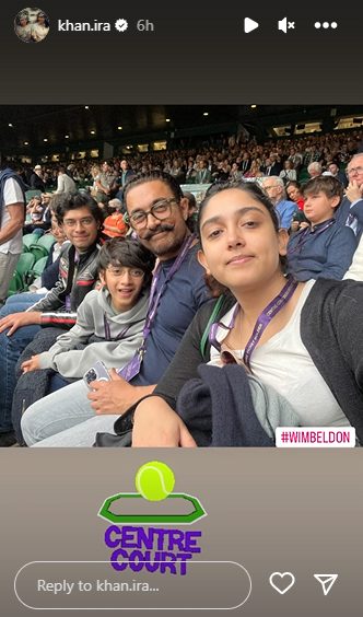 The father-daughter duo is currently spending quality family time at the Wimbledon as Ira Khan took to her Instagram stories looking all smiley as she poses with her father Aamir Khan and brother Junaid Khan.