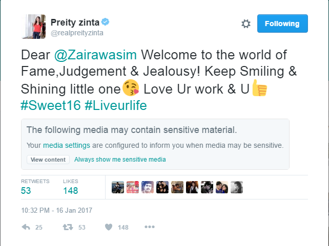 After ‘Dangal’ girl Zaira Wasim posted a picture with Jammu and Kashmir’s CM Mehmooba Mufti, a huge controversy broke out in the volatile state. People trolled her and said that she is setting up a wrong example for the youth of Kashmir. The chaos crossed the limit and the poor girl had to send out a public apology on social media for her acts. Though she deleted this apology later on, it did not go unnoticed from the Bollywood celebrities, who came out in support of her. Of course, Zaira lived a nightmare with all the hullabaloo over her post, but the way Bollywood came out in support of her is quite overwhelming. Celebs like Aamir Khan, Shraddha Kapoor, Preity Zinta, Javed Akhtar, Swara Bhaskar and many more raised their voice against this harassment.